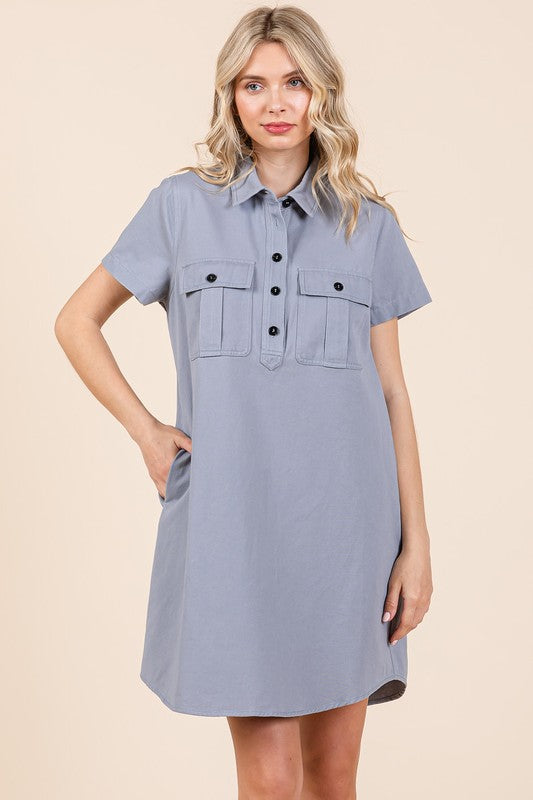Mittoshop Button Detail Collared Neck Short Sleeve Shirt Dress