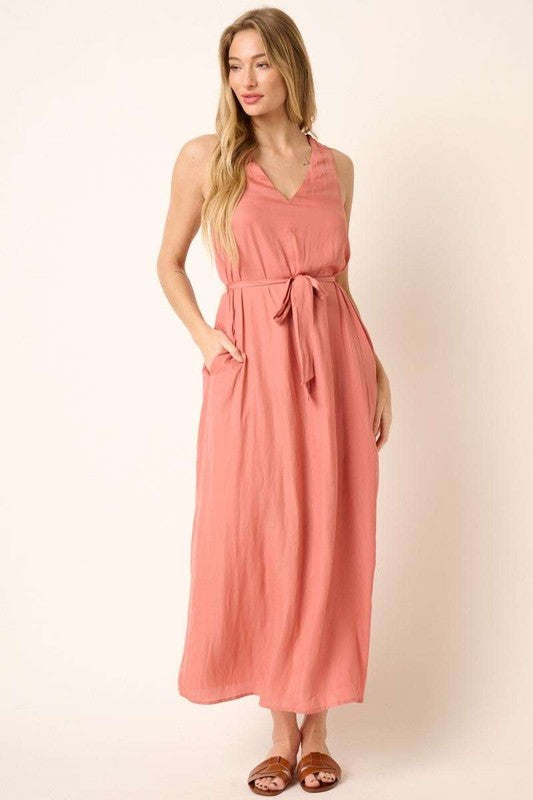 Mittoshop Cross Back Belted V Neck Tank Maxi Dress
