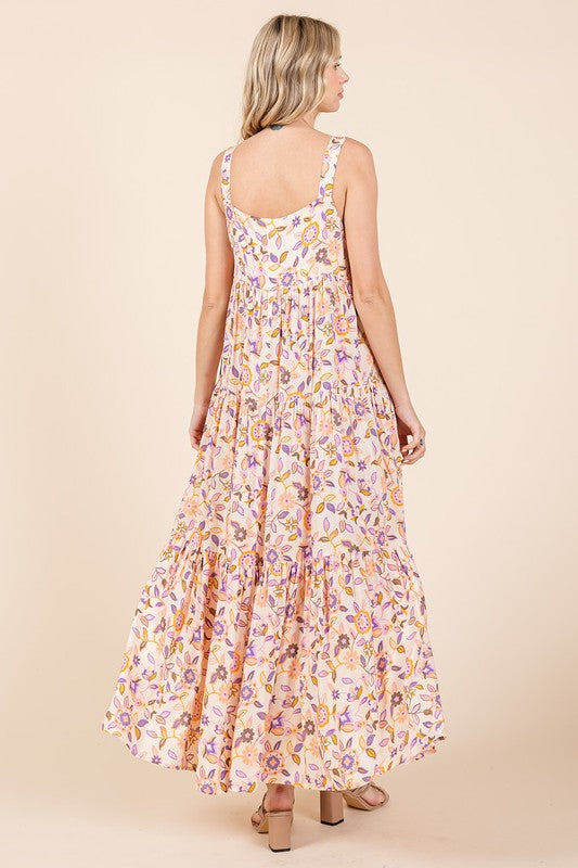 Mittoshop Flower Print Tiered Sleeveless Empire Maxi Dress