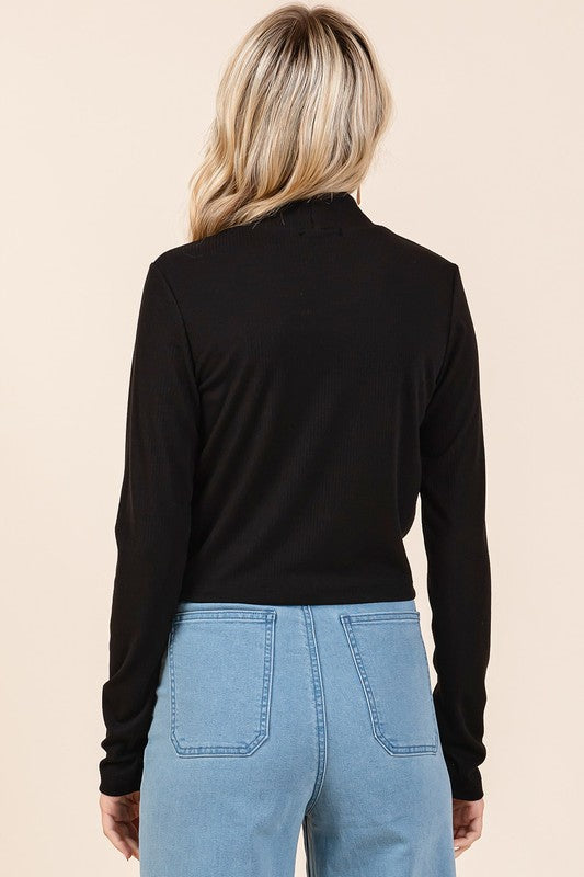 Mittoshop Mock Neck Rib Knit Long Sleeve Crop Top