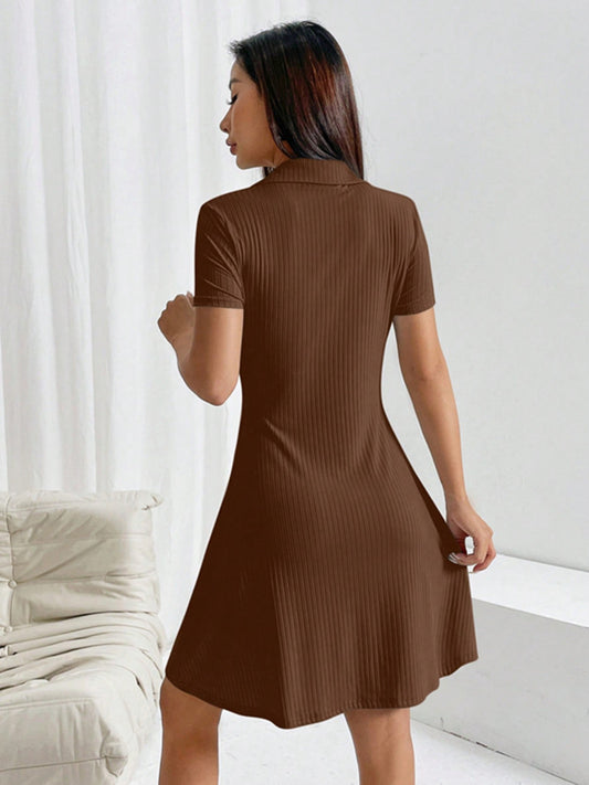 Sold outRibbed Short Sleeve Mini Shirt Dress