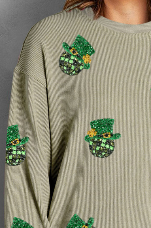 Sequin Round Neck Dropped Shoulder Sweatshirt