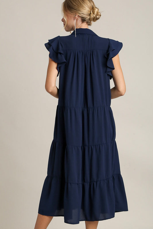 Umgee Full Size Johnny Collar Ruffle Cap Sleeve Tiered Dress Plus Size