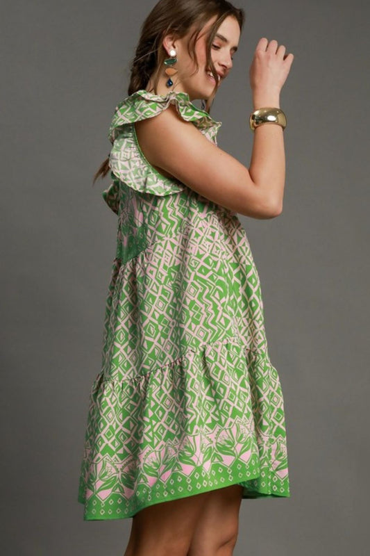 Umgee Full Size Layered Ruffle Sleeve Mini Dress Plus Size