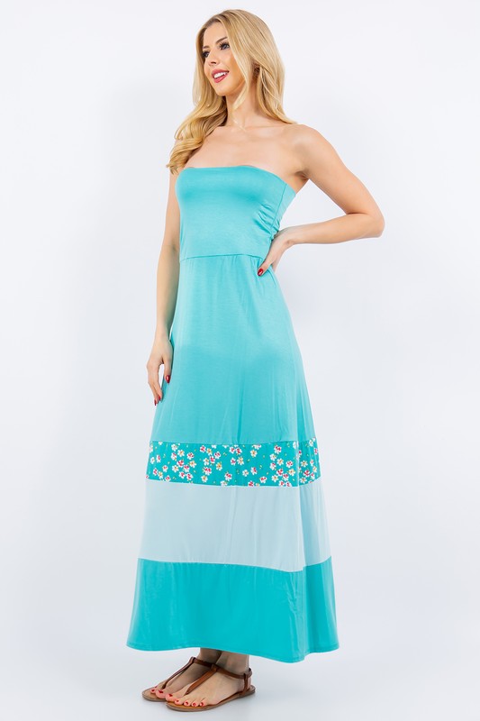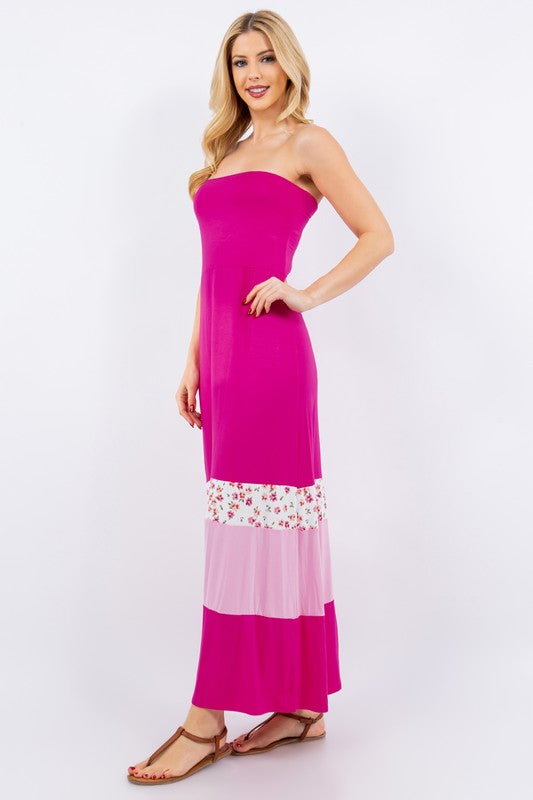 Celeste Full Size Color Block Tube Maxi Dress Plus Size