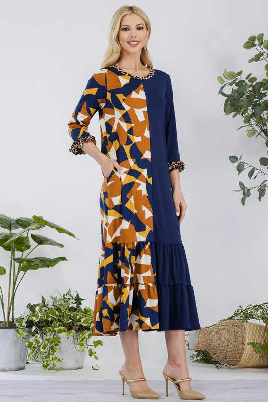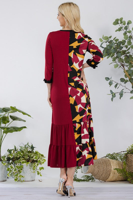 Celeste Full Size Color Block Midi Dress Plus Size