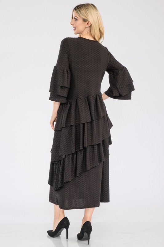 Celeste Full Size Honey Comb Asymmetrical Ruffle Midi Dress Plus Size