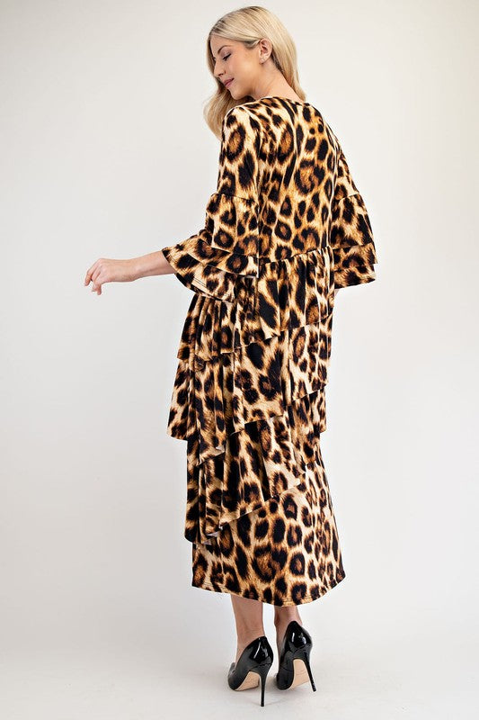 Celeste Full Size Leopard Asymmetrical Ruffle Midi Dress Plus Size