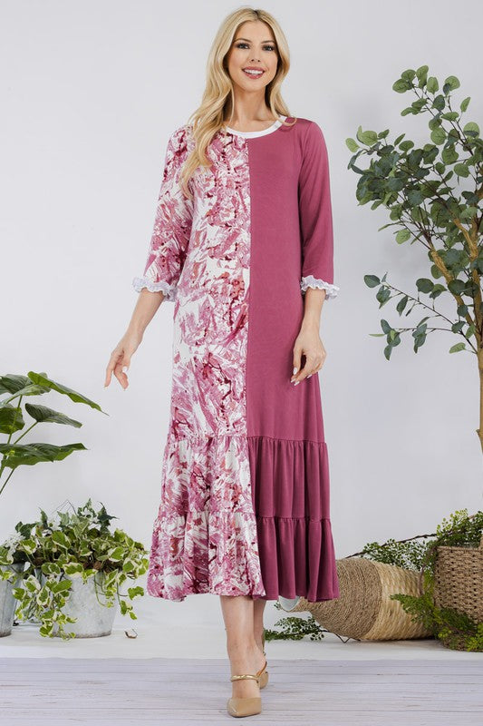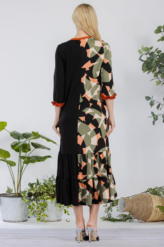Celeste Full Size Contrast Tie Dye Ruffled Midi Dress Plus Size
