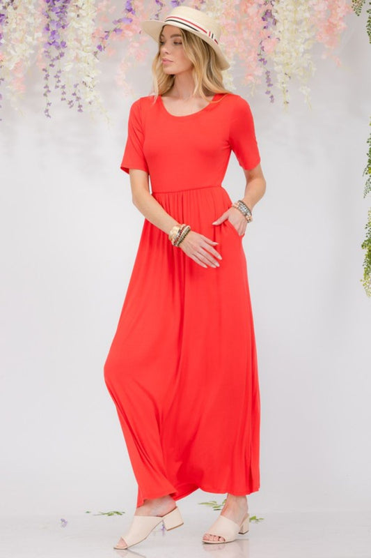 Celeste Full Size Round Neck Short Sleeve Maxi Dress with Pockets Plus Size