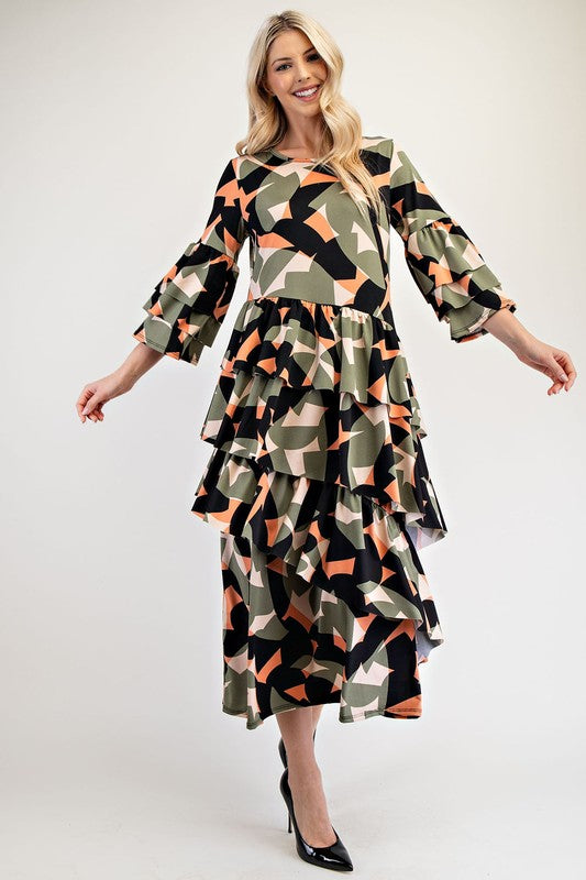 Celeste Full Size Printed Asymmetrical Ruffle Midi Dress Plus Size