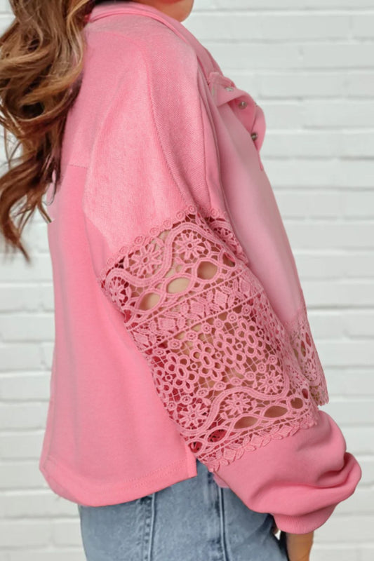Crochet Trim Printed V-Neck Short Sleeve Mini Dress