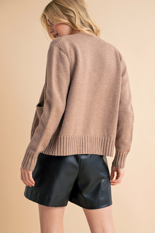 Aemi + Co Ribbed Hem Button Down V-Neck Cardigan