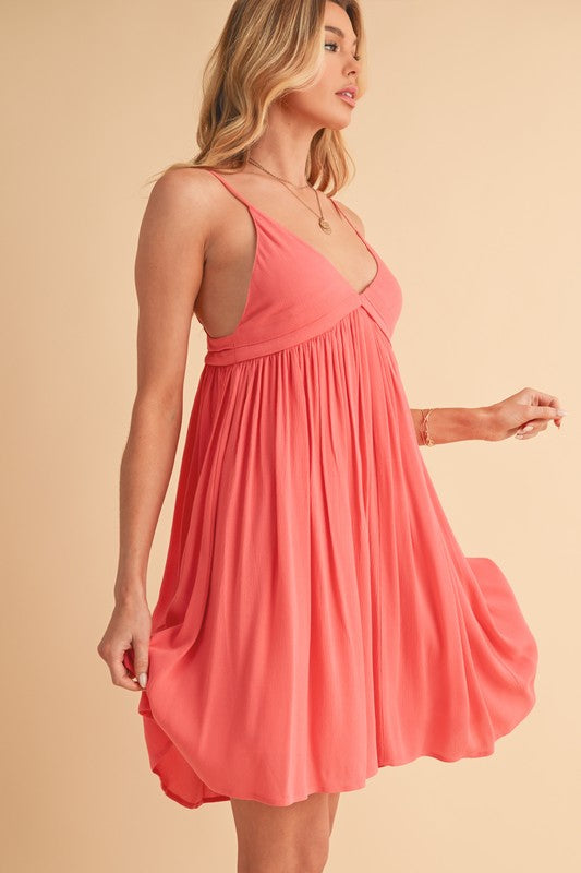 Aemi + Co Ruched Plunge Mini Cami Dress