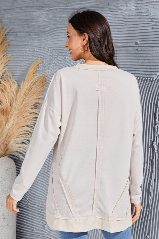 Exposed Seam Half Button Long Sleeve Sweatshirt