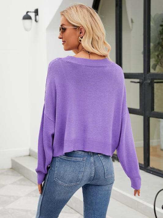 Exposed Seam V-Neck Long Sleeve Slit Sweatshirt
