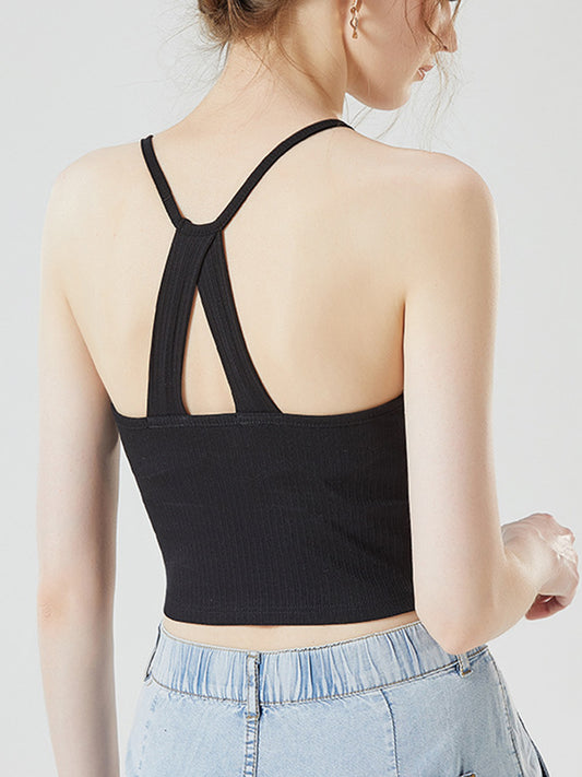 Grecian Neck Cropped Tank with Chest Pads