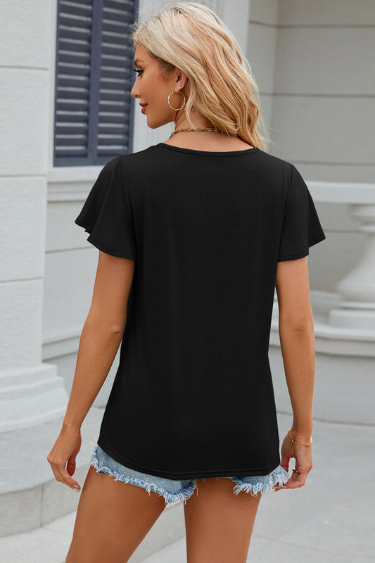 Decorative Button V-Neck Long Sleeve T-Shirt