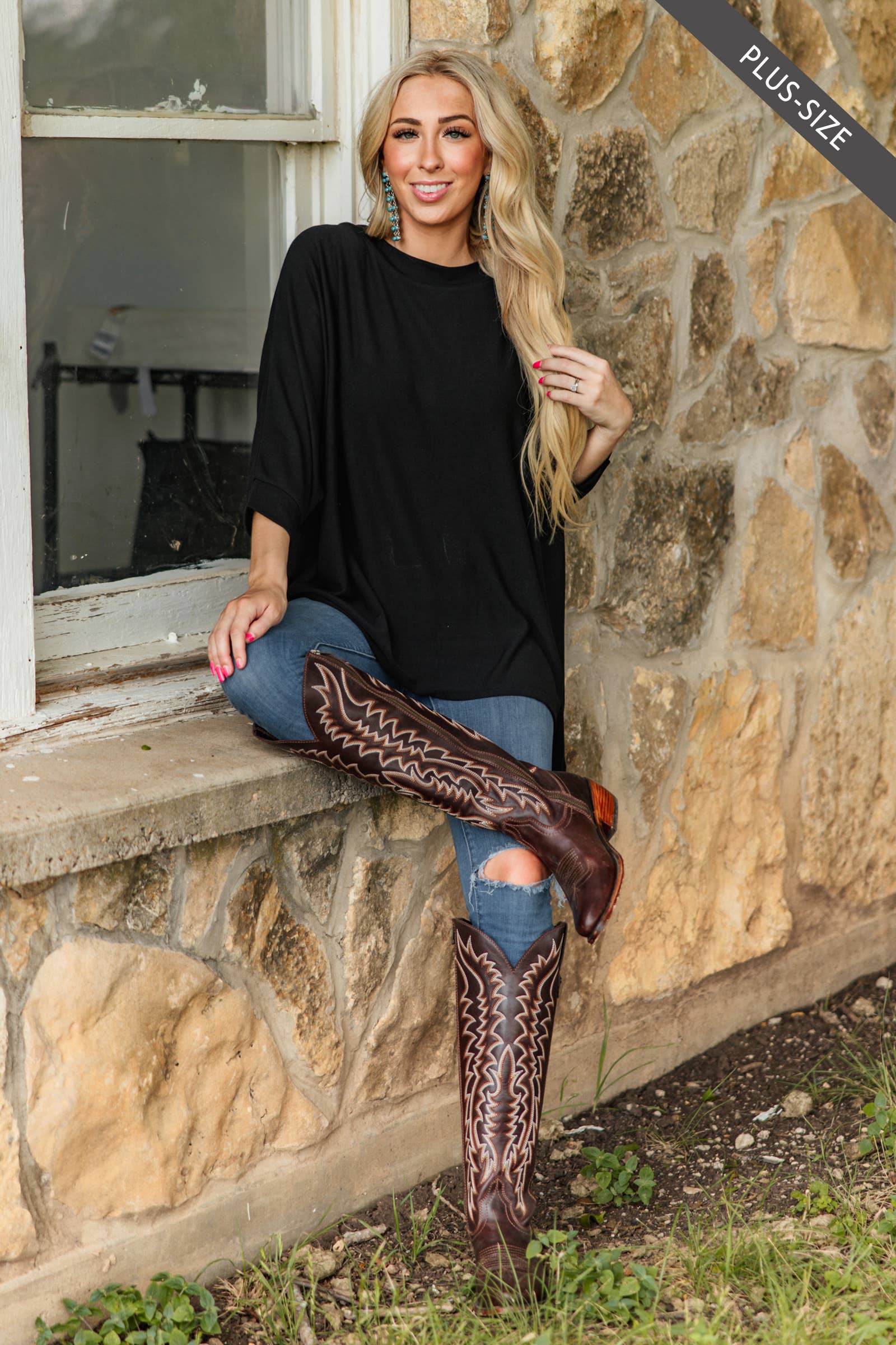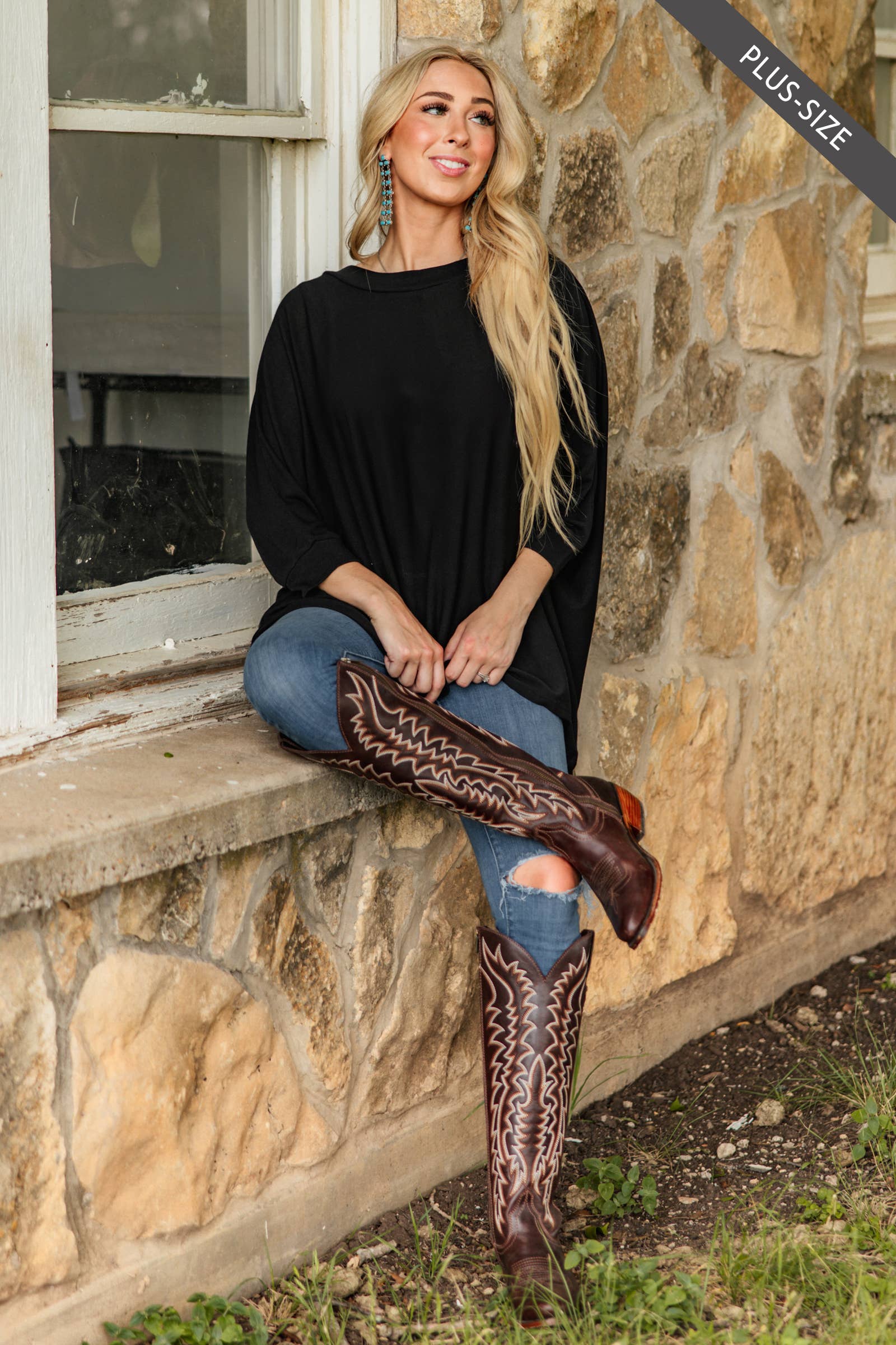 Slip into ultimate comfort with this lightweight hacci top, perfect for your daily wear. Designed with a flattering round neckline and relaxed dolman sleeves, it drapes beautifully for an easygoing silhouette.